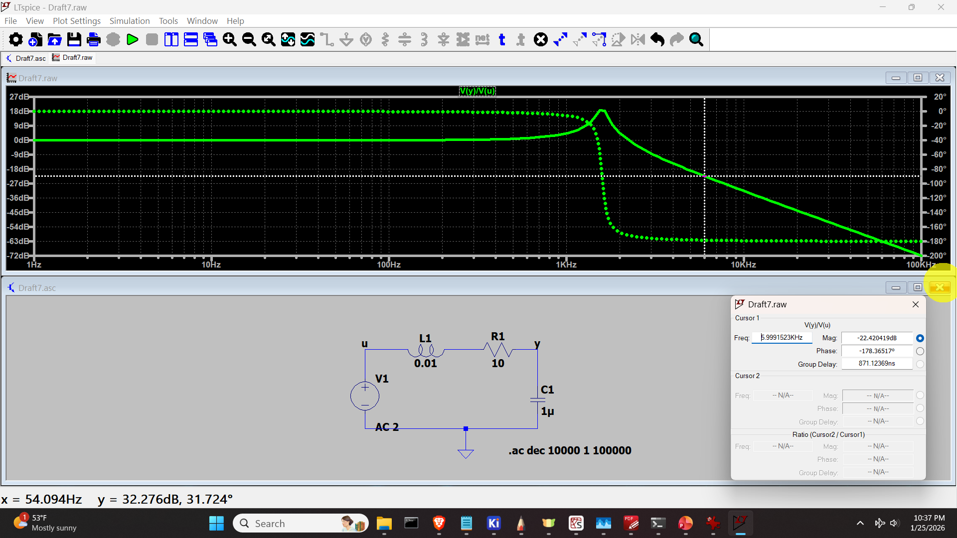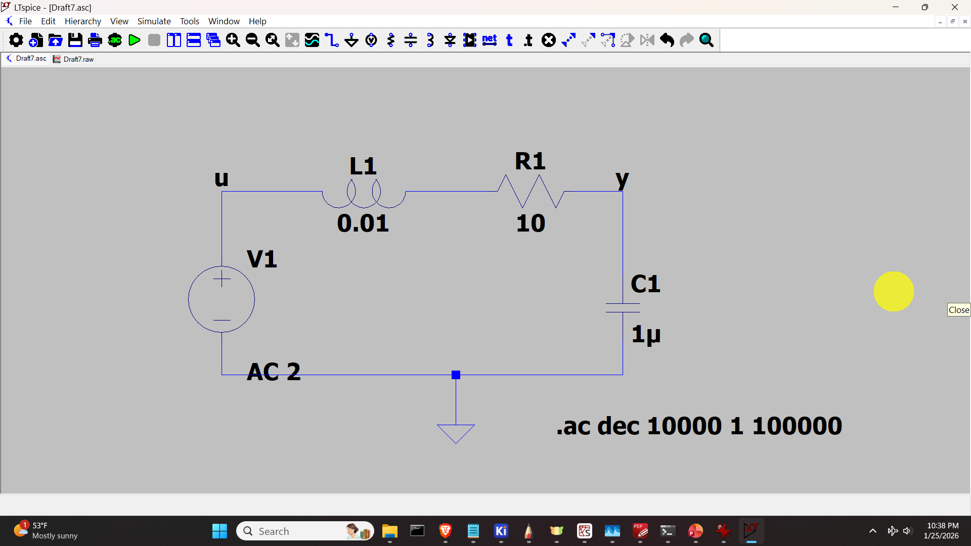 In this tutorial, we explain how to generate a Bode plot of an RLC circuit (resistor-inductor-capacitor circuit) in LTspice. We explain how to validate the simulation results by using the second-order system dynamics. The YouTube tutorial is given below.